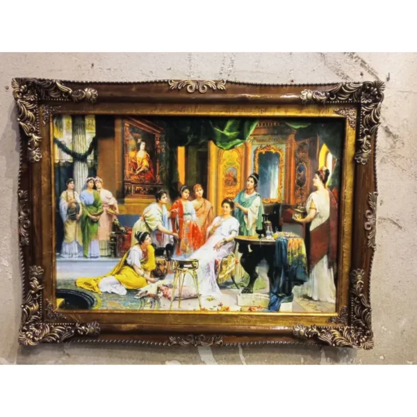 تابلو فرش ماشینی طرح زنان رومی – سایز ۱۰۰×۷۰ سانتی‌متر با قاب چوبی کلاسیک تابلو فرش ماشینی طرح زنان رومی،