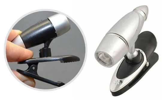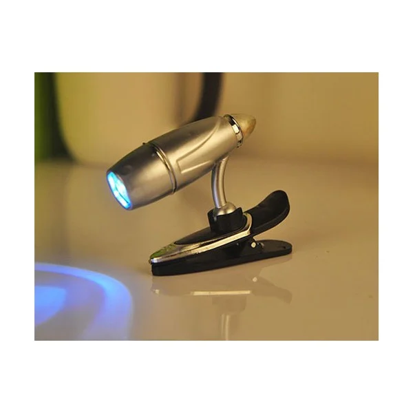 چراغ کلیپسی جیبی، محصولی با طراحی جدید و بسیار کاربردی برای همه افراد در شرایط مختلف است. این چراغ قوه شامل یک چراغ ال ای دی با نور مناسب جهت روشن کردن سطح می باشد که با استفاده از سه عدد باطری ساعت تغذیه می شود. چراغ بر روی پایه با قابلیت چرخش ۳۶۰ درجه و تنظیم زاویه تابش قرار گرفته که با استفاده از آن به سادگی می توانید نور مورد نیاز را در موقعیت مناسب تنظیم و ثابت کنید . پایه چراغ قوه مطالعه ، مجهز به گیره کلیپسی شکل می باشد که با وجود آن می توانید چراغ را بر روی لبه کتاب ، جزوه و سایر سطوح… قرار دهید تا نور مورد نیاز شما را تأمین نماید، علاوه بر این از چراغ کلیپسی جیبی، می توان برای روشن کردن صفحه کلید لپ تاپ نیز استفاده نمود، کافیست بر روی لبه نمایشگر نصب و زاویه آن را روی صفحه کلید تنظیم نمایید . ابعاد مناسب ، وزن کم ، نور کافی ، امکان نصب آسان بر روی لبه کتاب ، نمایشگر و … ، همگی ویژگی هایی هستند که چراغ قوه کلیپسی را به یک ابزار کاربردی با امکان حمل و جابه جایی آسان جهت دسترسی در شرایط مختلف تبدیل نموده است .